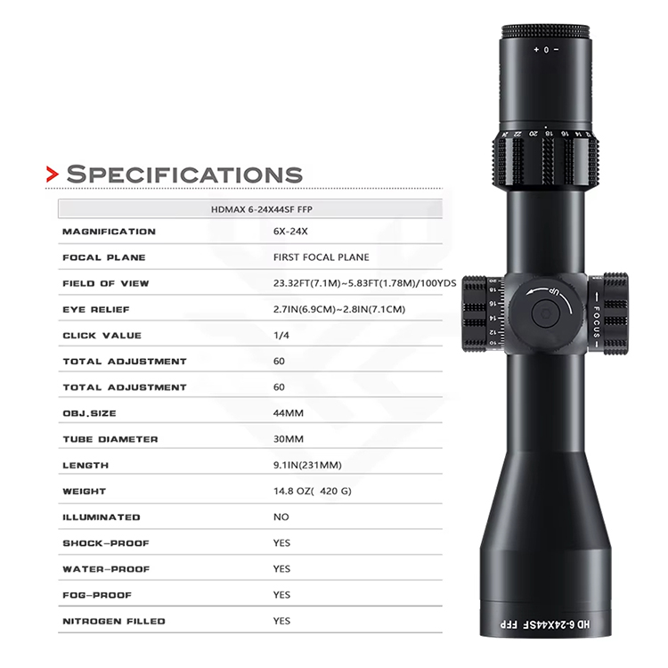 HD MAX 6-24X44 SF FFP HD ловечки монокуларен телескоп со високи леќи Трговија на големо